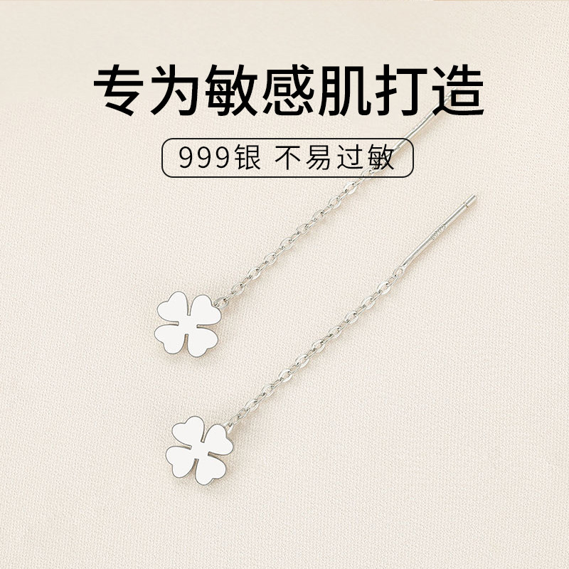 999 pure silver ear necklace with female quadrupled ears ear accessories 2021 new trendy Sueardrops female temperament earrings 100 hitch