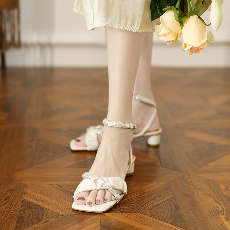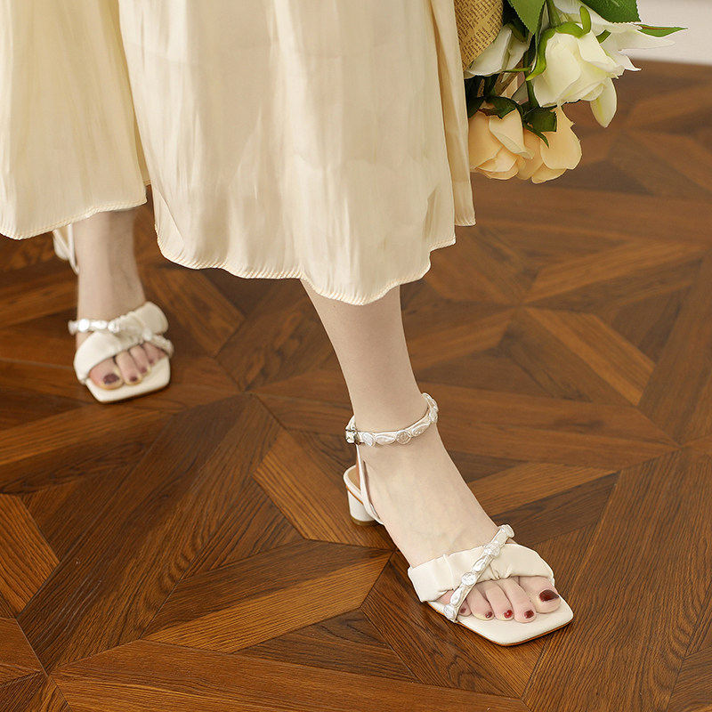 (12 yue 12 0 point open grab offers limited non-refundable payment does not change) square chunky-heel field cingulate French