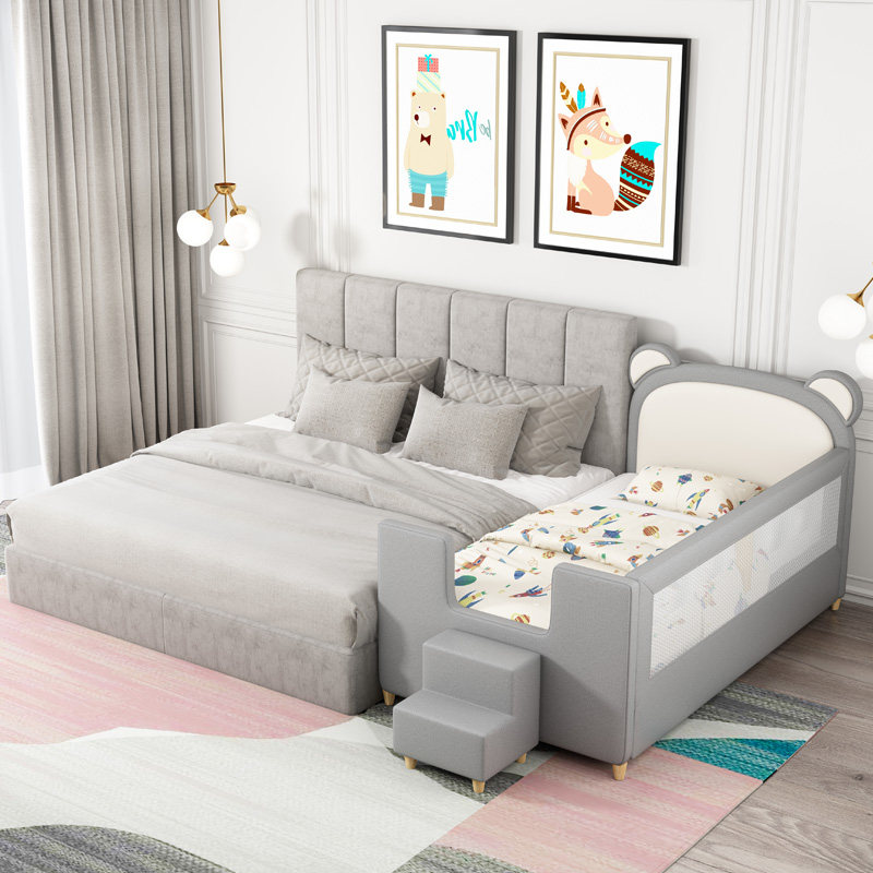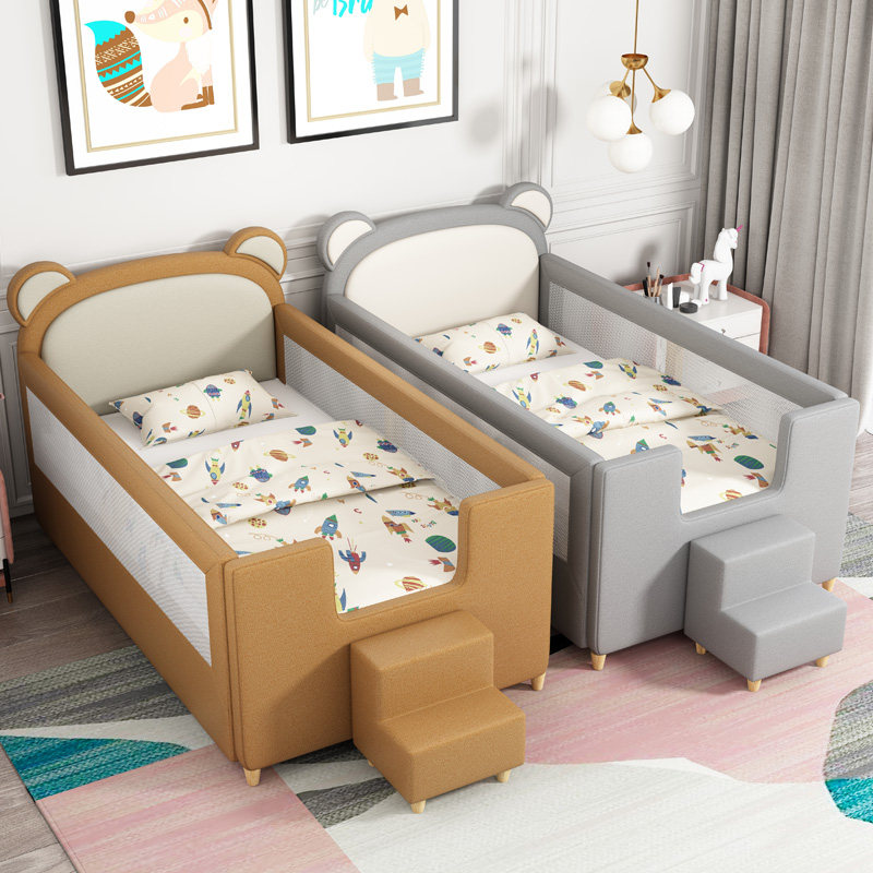 Children's splicing bed solid wood widening one meter bed soft package guardrail crib seamless splicing big bed side boy's bed