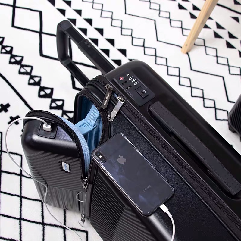 Japan front opening business boarding case 20 inch luggage small USB charging trolley case for men and women