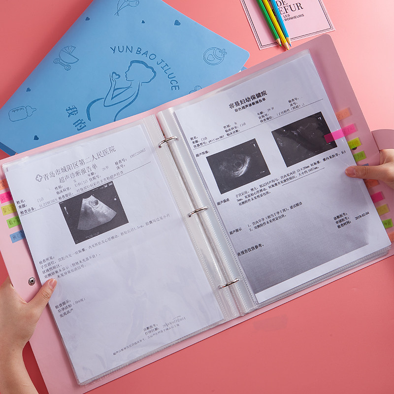 Pregnancy examination book report single Pregnancy mother portable b ultrasound birth examination report Bed sheet Collection data record Storage bag folder Pregnant woman storage loose-leaf examination cow baby pregnancy file book