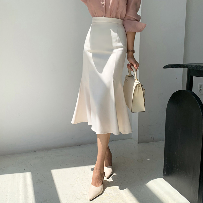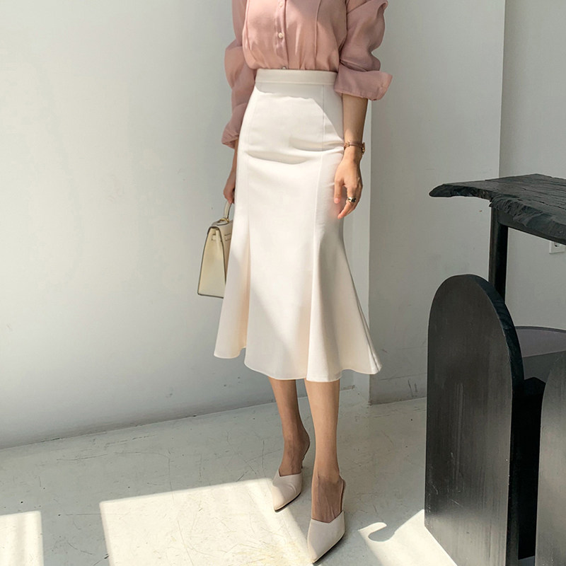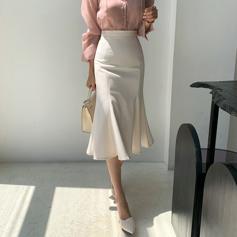 2022 summer new Korean version fashion high waist slim fishtail skirt female flounce temperament professional bag hip skirt