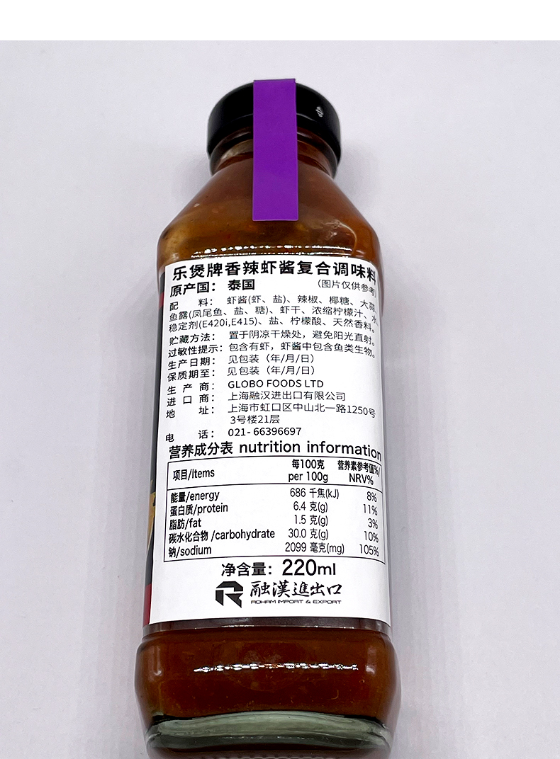 Thai import LOBO Spicy Shrimp Sauce 220g Spicy Shrimp Taste Dip Sauce Seafood Sauce Thai Style Cuisine Fried Hollow Vegetable Shrimp Paste
