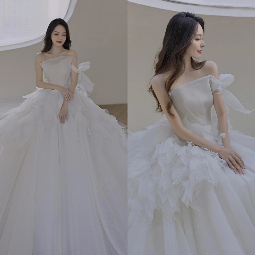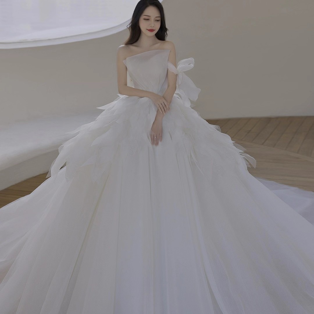 Starry sky bride tube top light main wedding dress 2023 new forest princess style small dreamy super fairy temperament trailing