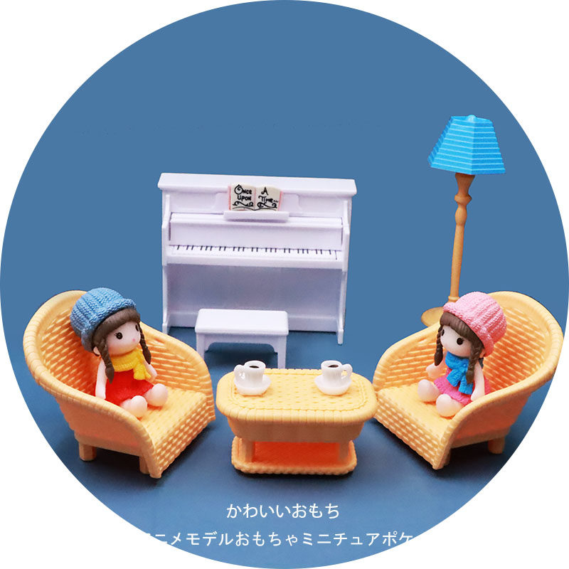 Piano living room suite 3 dolls (pictured) Piano living room suite 2 dolls (pictured) Piano living room suite (no doll picture) Living room table and chair 2 dolls (pictured)