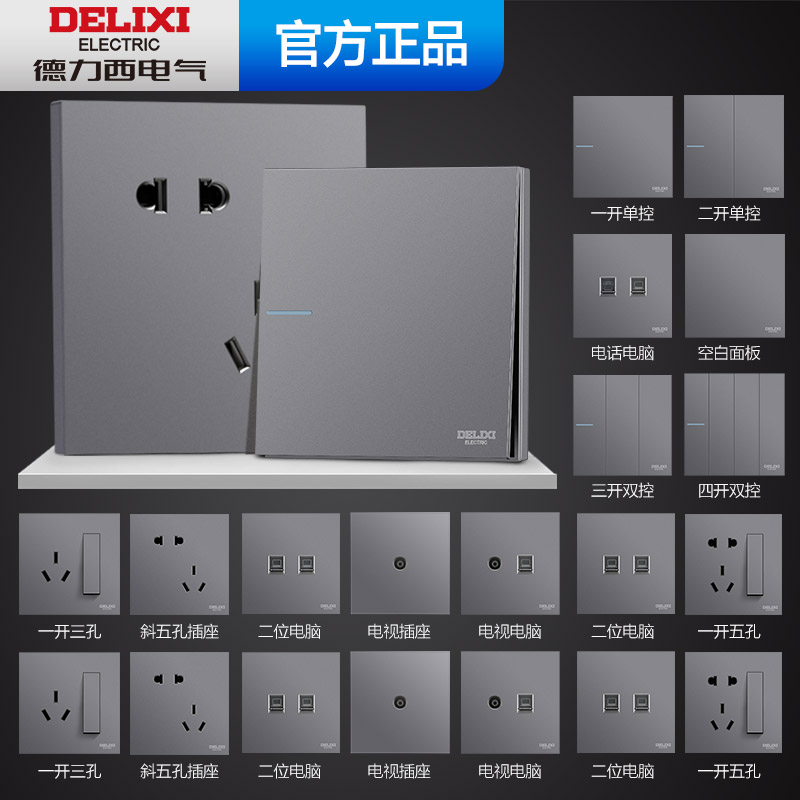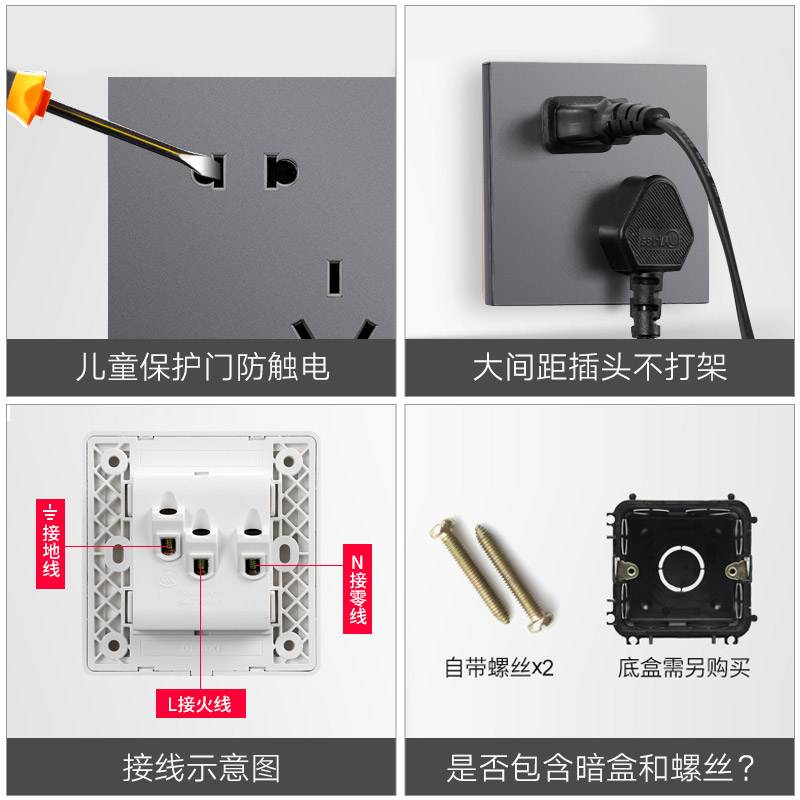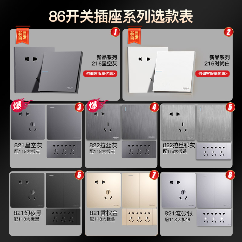 Delixi switch socket panel porous 86 type household light and dark installation open 5 five holes 16A air conditioning wall switch