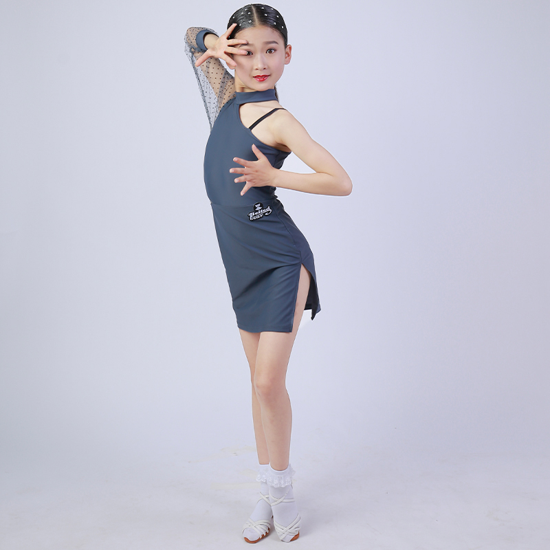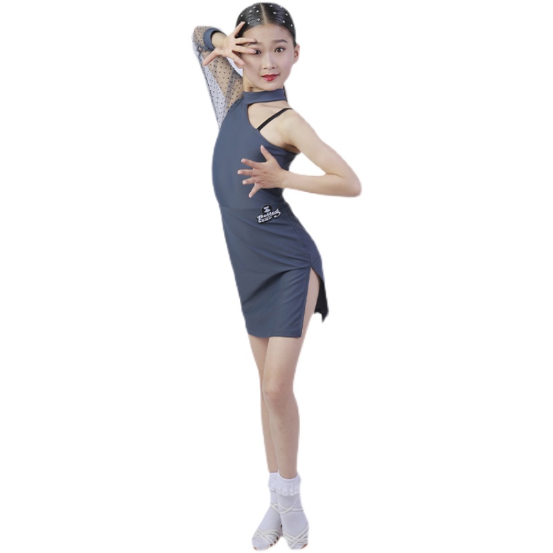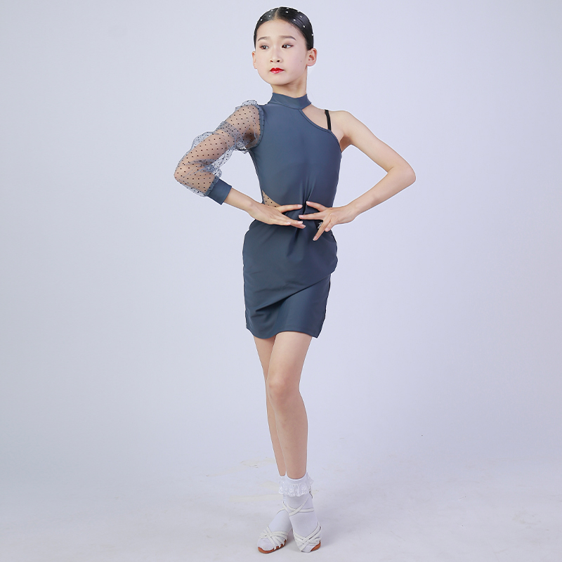 ML Latin dance clothes girls summer 2021 new one-shoulder mesh sleeve examination grade children's performance performance practice clothes children