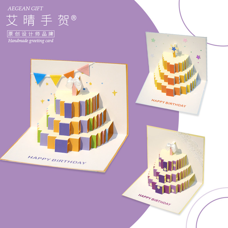 Birthday Cake Three-dimensional Greeting Cards Advanced Delicacy Handmade 3diy Gifts Children Birthday Wives Wedding Anniversaries