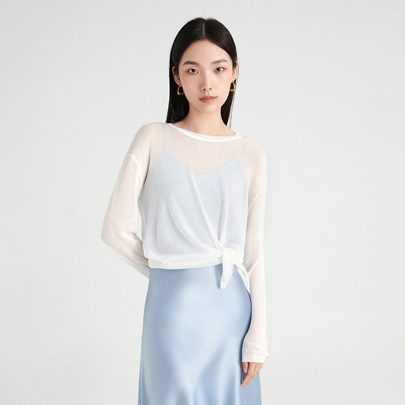 SUD Weiguang Collection_French elegance, soft and comfortable, not picking people_Slit tie long-sleeved pullover sweater