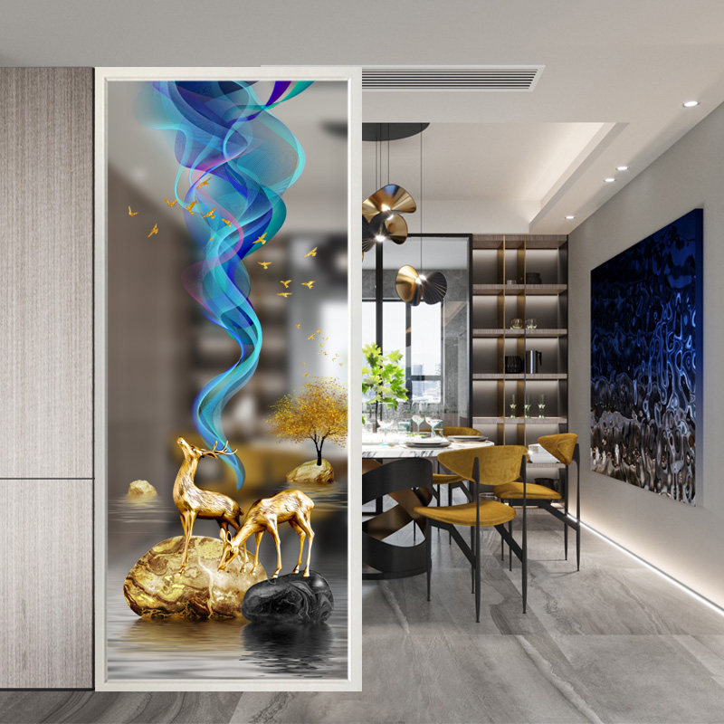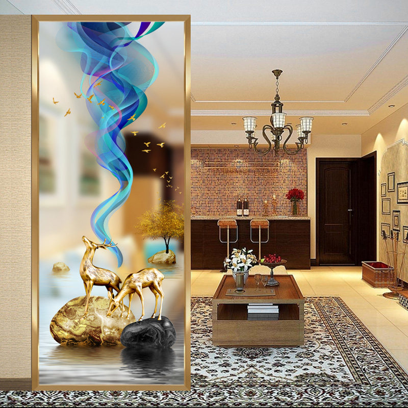 New Chinese Art Glass Living-room Screen Bedroom Partition home decoration Decorative Entry into the family Xuanguan Light and luxurious shelter Double deer