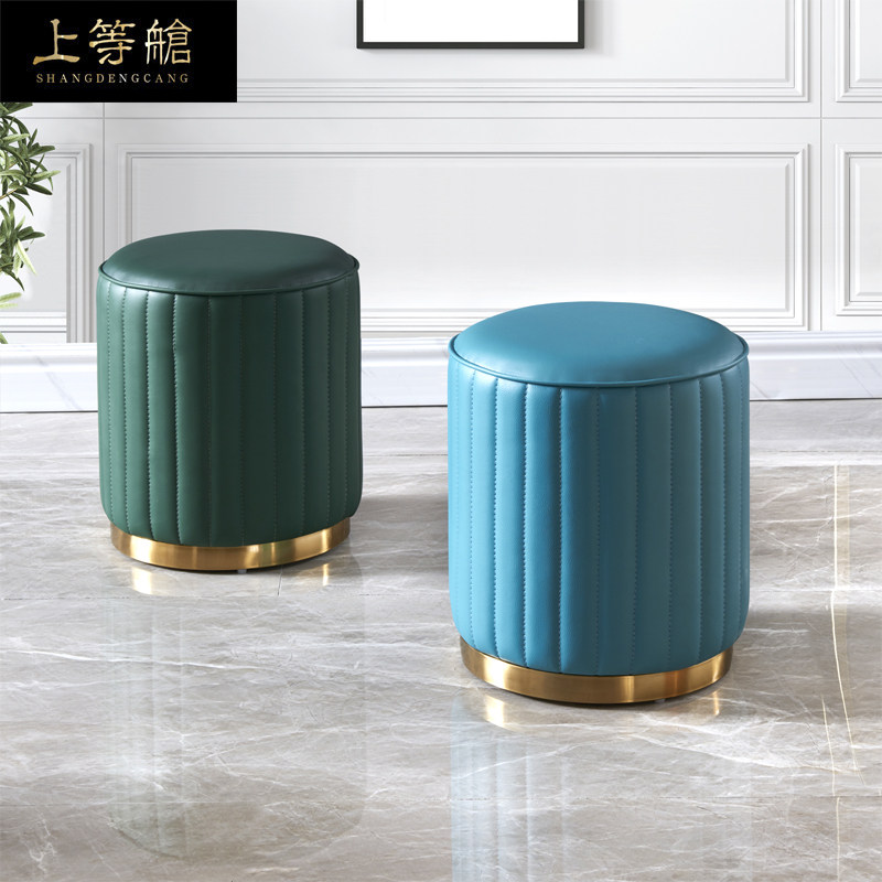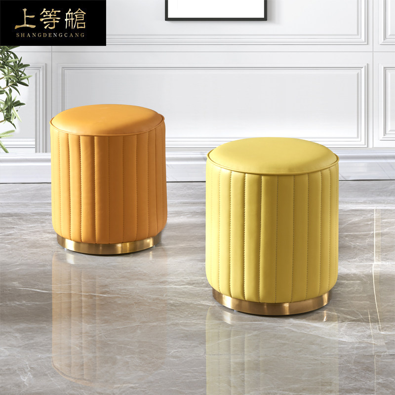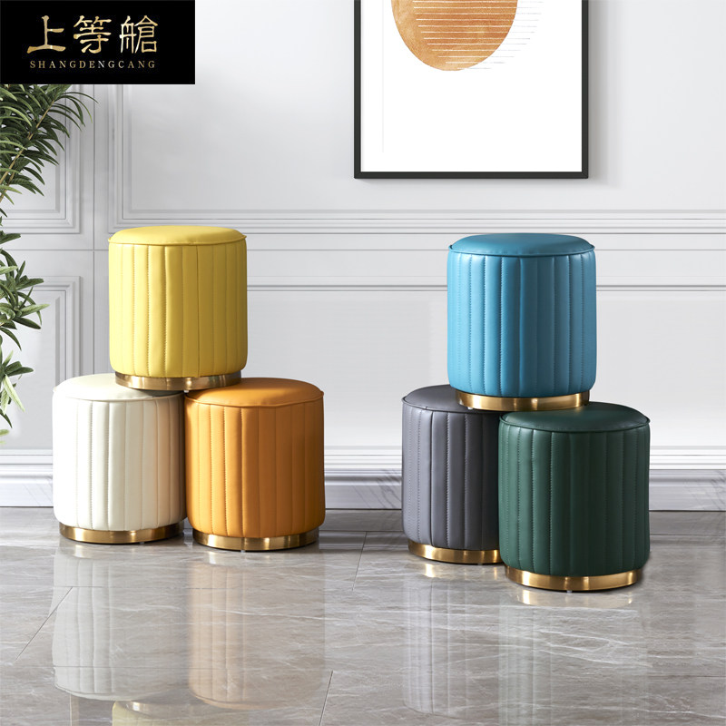 Light luxury leather small round stool home living room coffee table stool net red makeup low stool sofa stool soft sitting pier change shoe stool