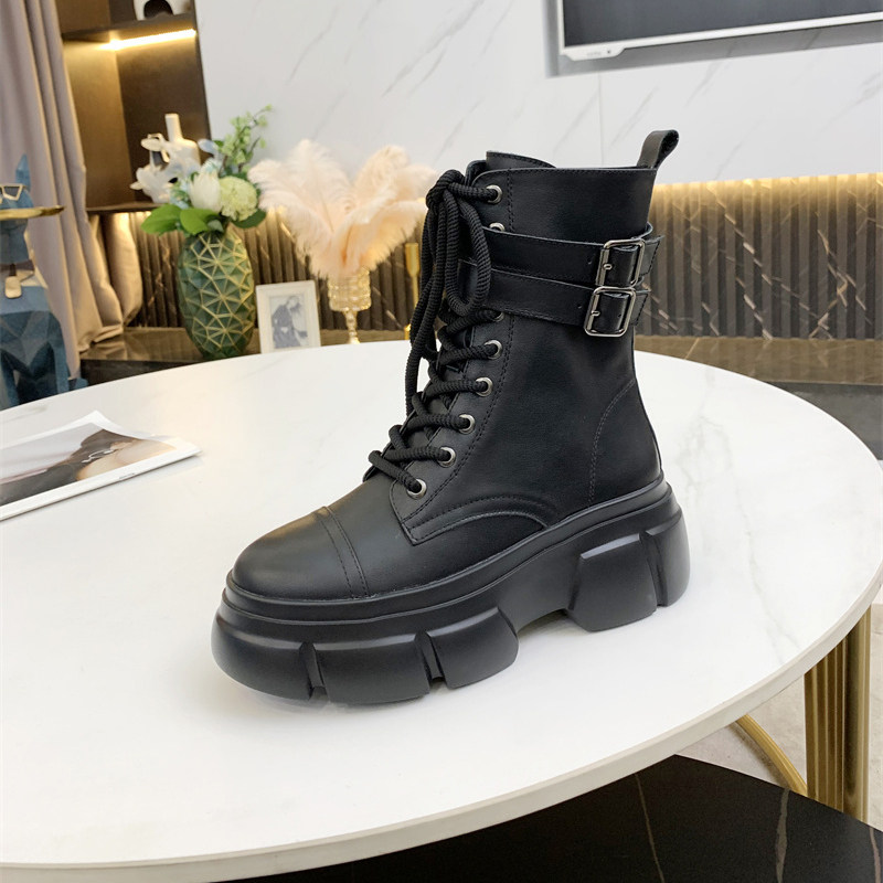 British Martin boots women's 2022 autumn and winter new thick-soled sponge cake ankle boots belt buckle mid-boots white boots women
