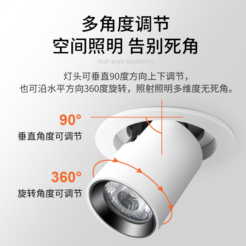 Stretching Spotlight Embedded Scale-adjustable Angle Living Room Household Skyflower Cob Nose Lights Pocklamp Spotlight