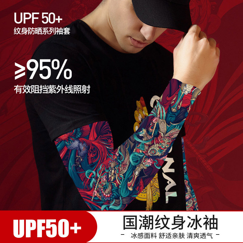 Summer thin film sunscreen women's outdoor sports Driving ice silk arms sleeves Riding Tattoo Flowers arm jacket Male