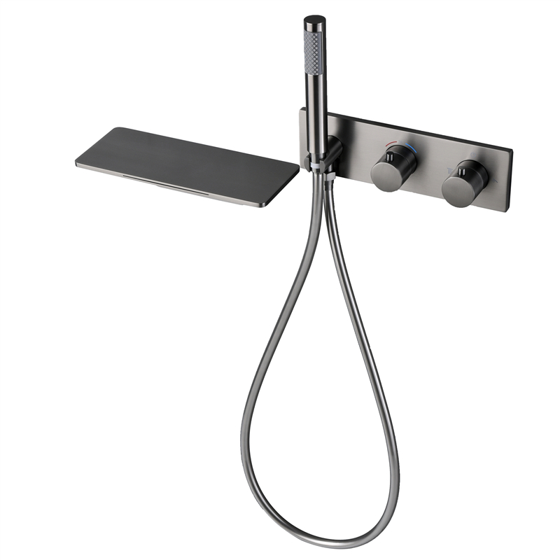 German Nordic Grey Concealed thermostatic bath tap bathroom Full copper waterfall Entrance Wall Shower SHOWER KIT