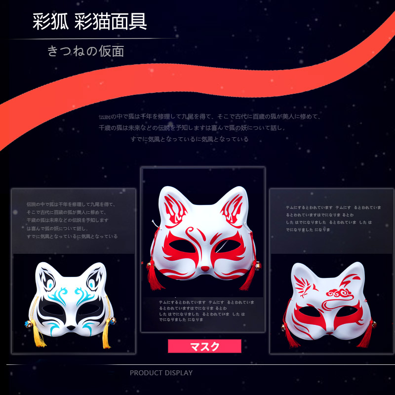 Half-face fox cat mask Japanese style full-face cat children's anime fox Anbu cos dress up street stall night market mask
