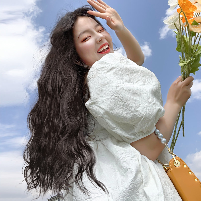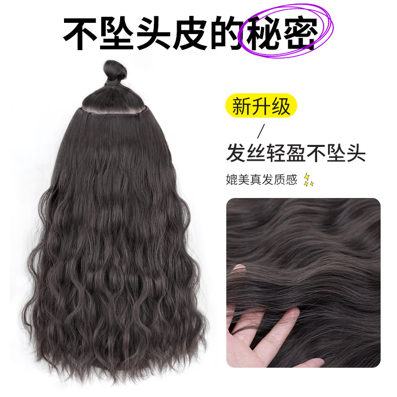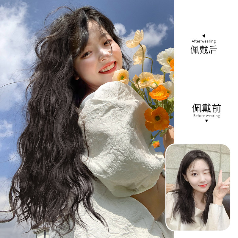 Fake Hair Flake Hair Growth Fluffy Emulation One-Piece Three-Patch-No-Mark Invisible Water Corrugated Summer Wig Women Long Hair