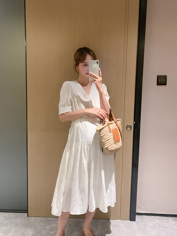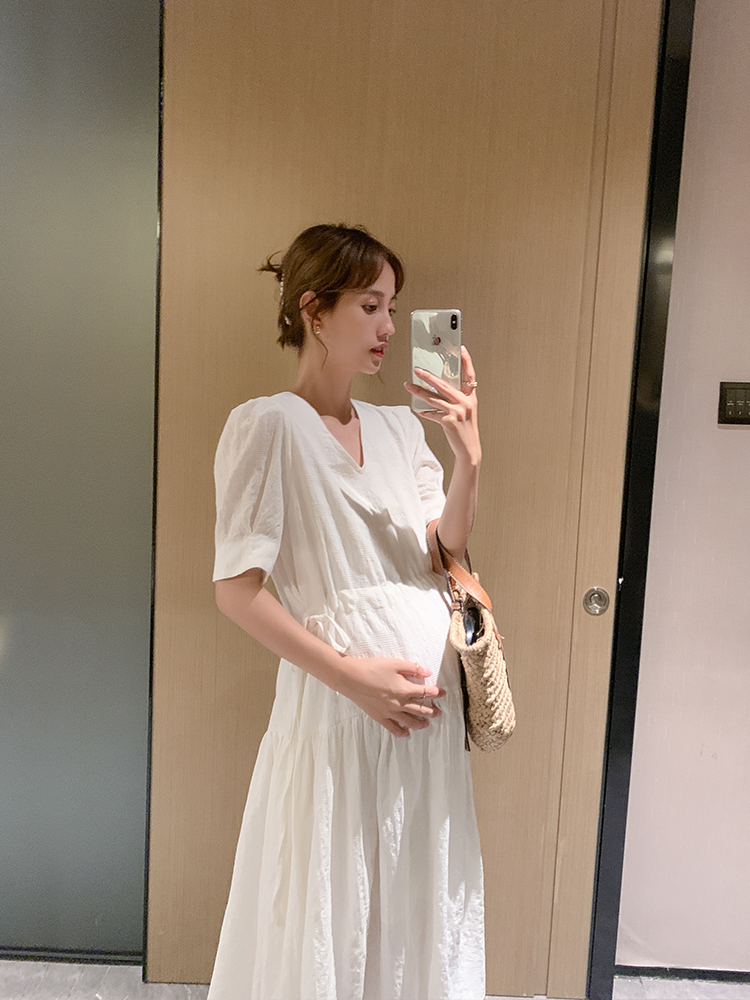 Pregnant women summer dress summer thin v-neck large size short sleeve loose large size dress medium and long version temperament tide