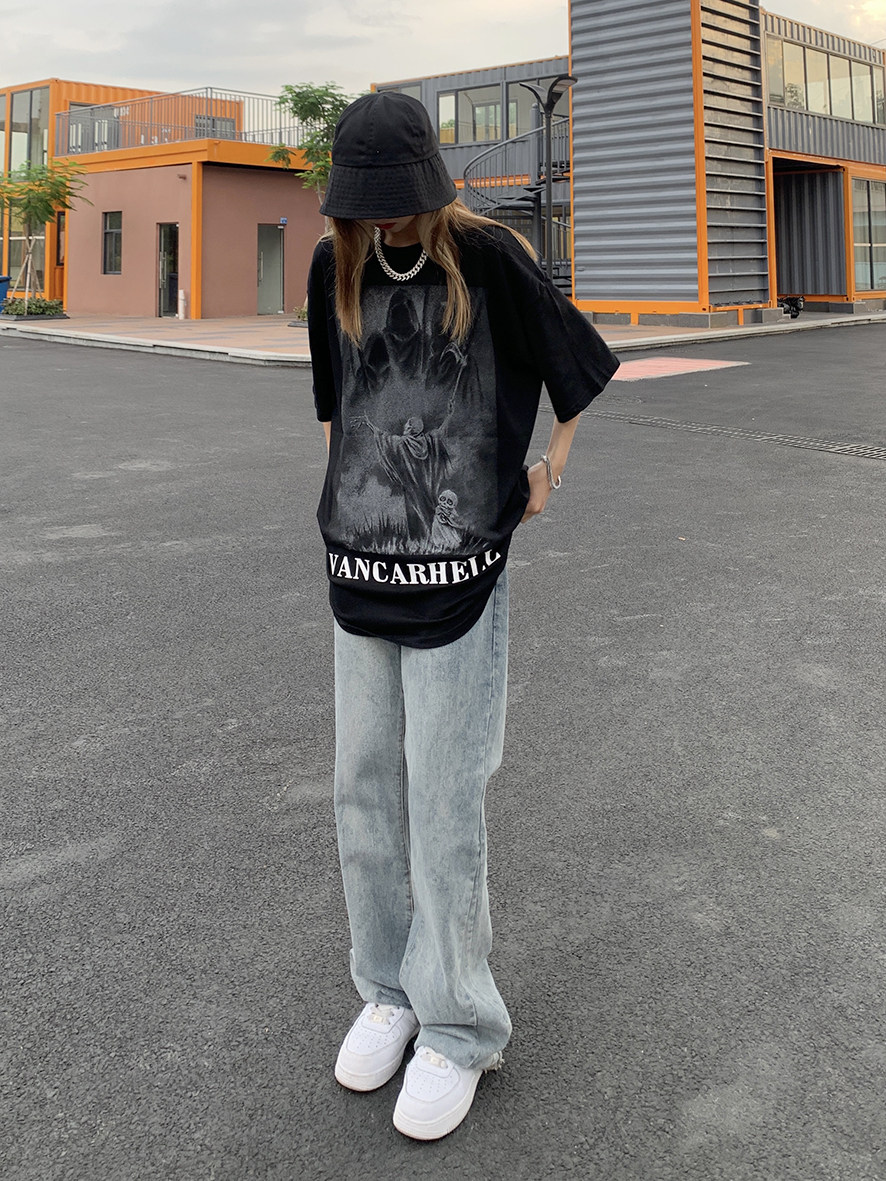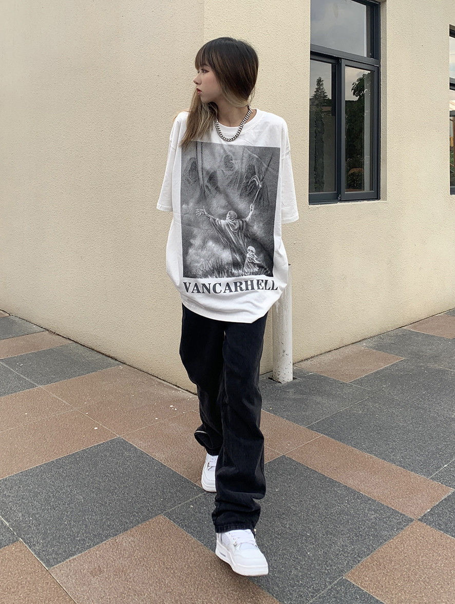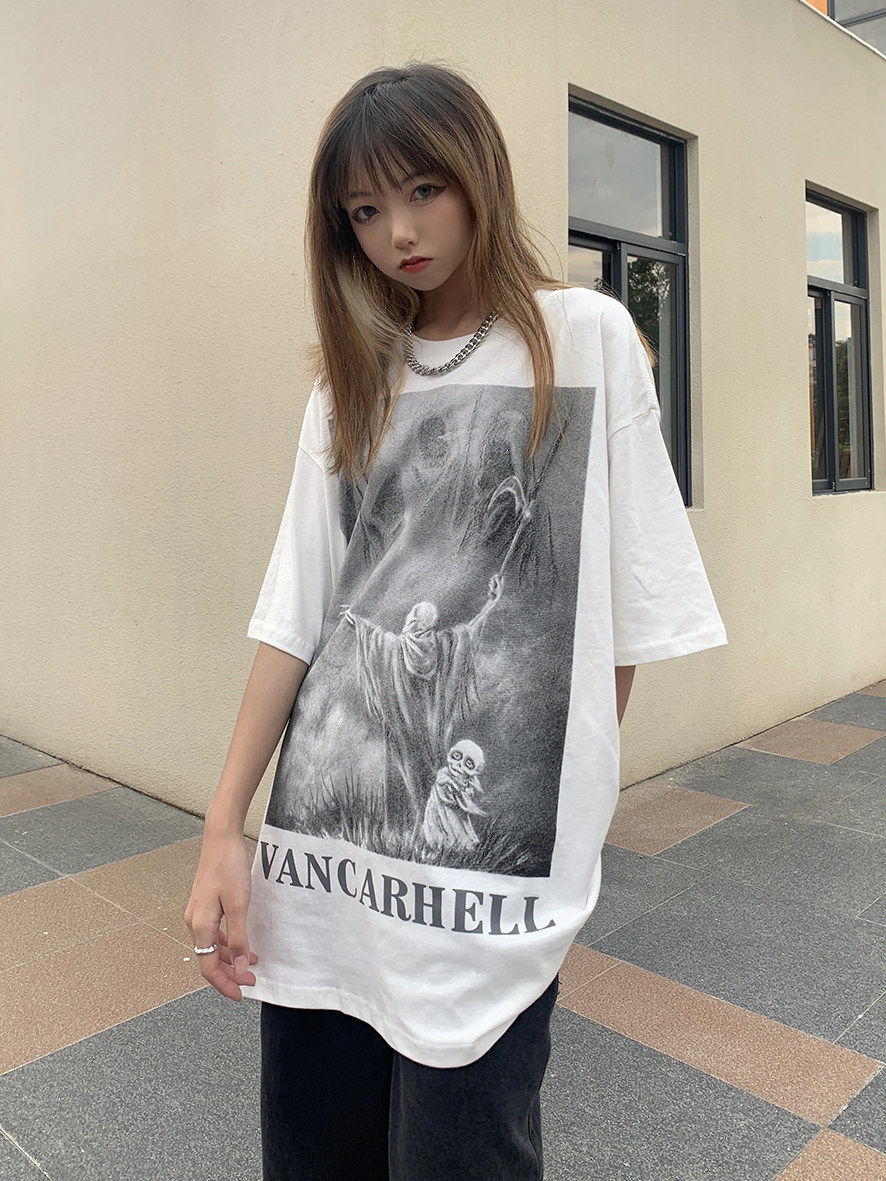 Legal alien European and American high street mourning short-sleeved T-shirt men and women summer ins tide brand loose oversize cotton