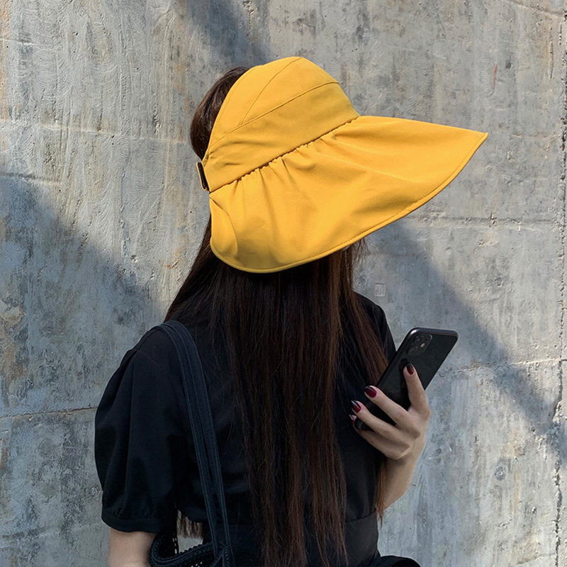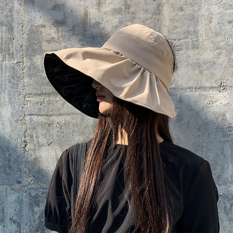 Evidison Free sunscreen hat women's summer big brim sun hat black glue anti-UV face cover empty top