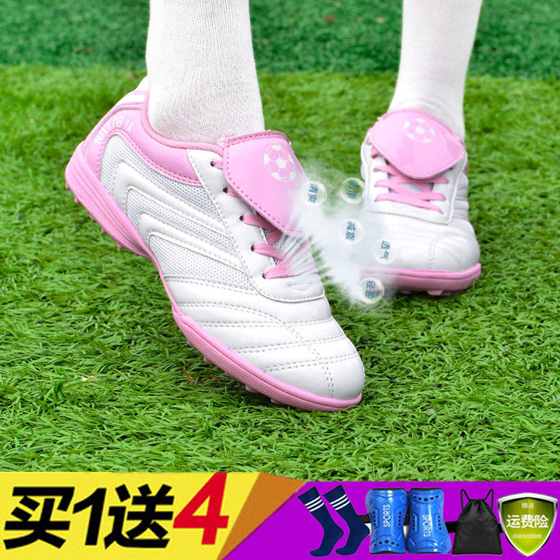 Women's children's football shoes broken nails TF men and women primary and secondary school students girls training shoes pink girls non-slip sneakers women