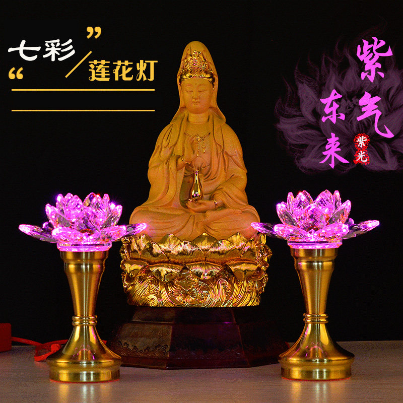 Buddha front for lamp crystal glass lotus lamp Buddha for lamp LED 7-color Changming lamp chaetheon lamp Home Buddha Hall