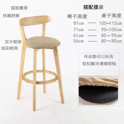Bar stool solid wood simple backrest bar stool Nordic household creative bar chair American retro Luo Gang H-67
