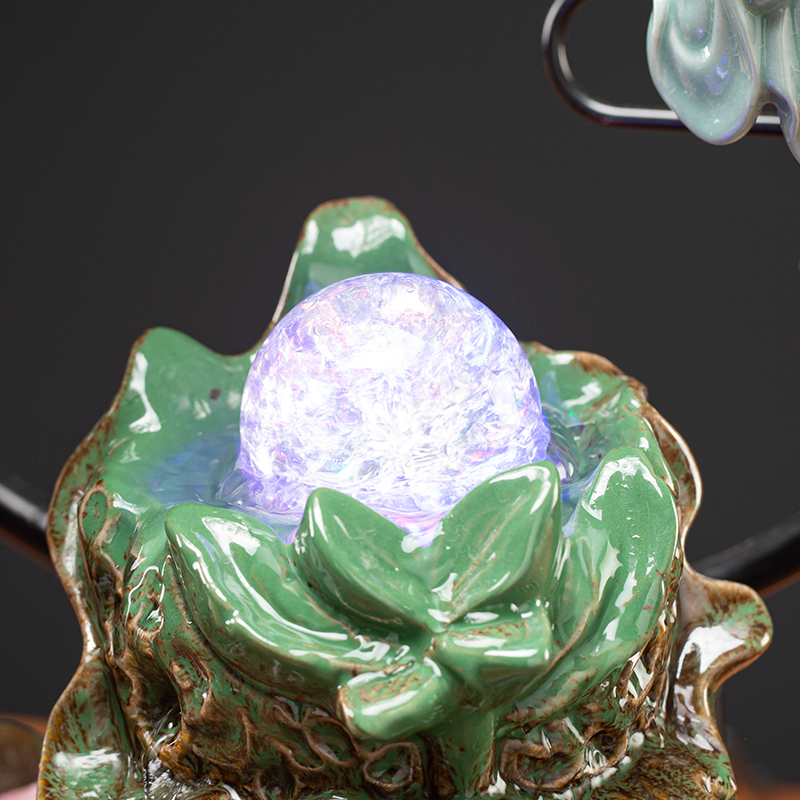 Cash Flowing Water Swing Piece Creative Lotus Fountain Cycle Humidifiers Ceramic Home Office Desktop Opening Gift