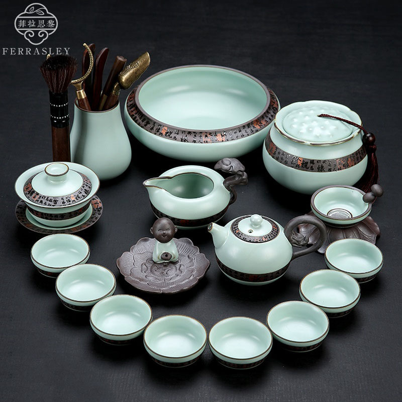Tianqing Ru Kiln 10 Pieces Teapot Gift Box Sets Sky Blue Ru Kiln 11 pieces of tea set Set of tea set Tianqing Ru kilns 14 pieces of tea jars wood box Tipping case suit Gothic kilns 18 pieces of tea set wood case Tipping case suit Tianqing Ru kiln 19