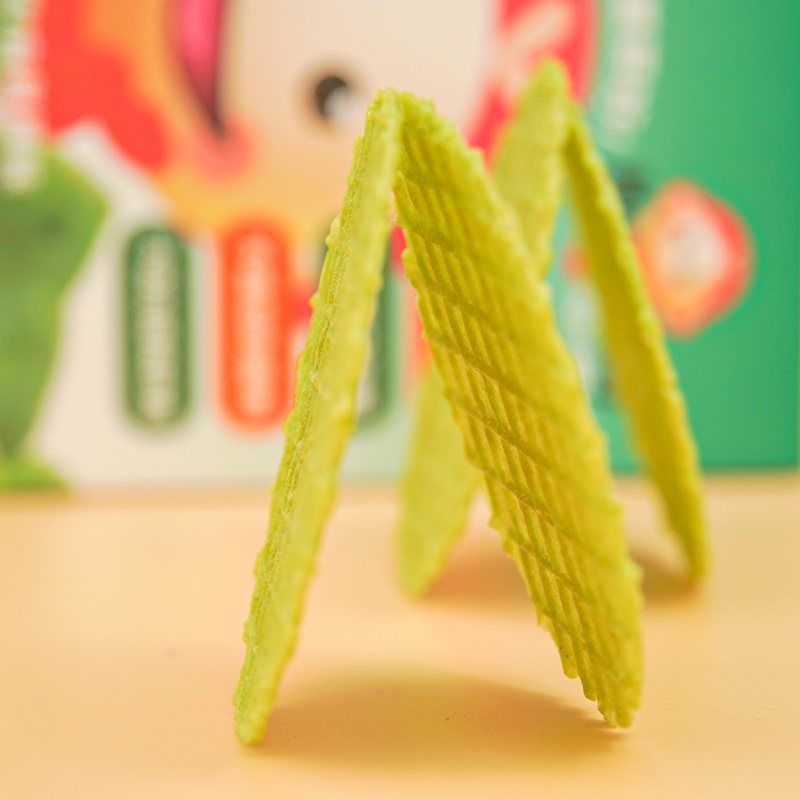 Corn slices Apple slices Purple potato slices Spinach slices Shrimp seaweed slices