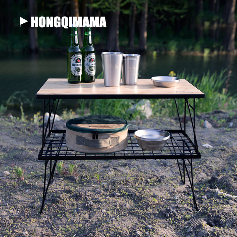 Outdoor Camping Nic Table Portable Steel Mesh Barbecue Table Multifunction Composition Folding Table Fine Iron Art Stings