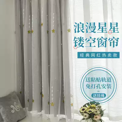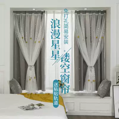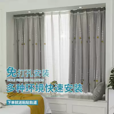 Hanging curtain non-perforated curtain curtain gauze sticky track bedroom bay window modern minimalist children's room a complete set
