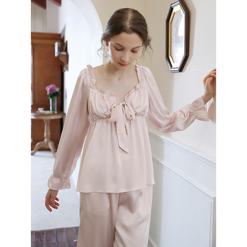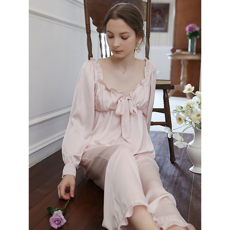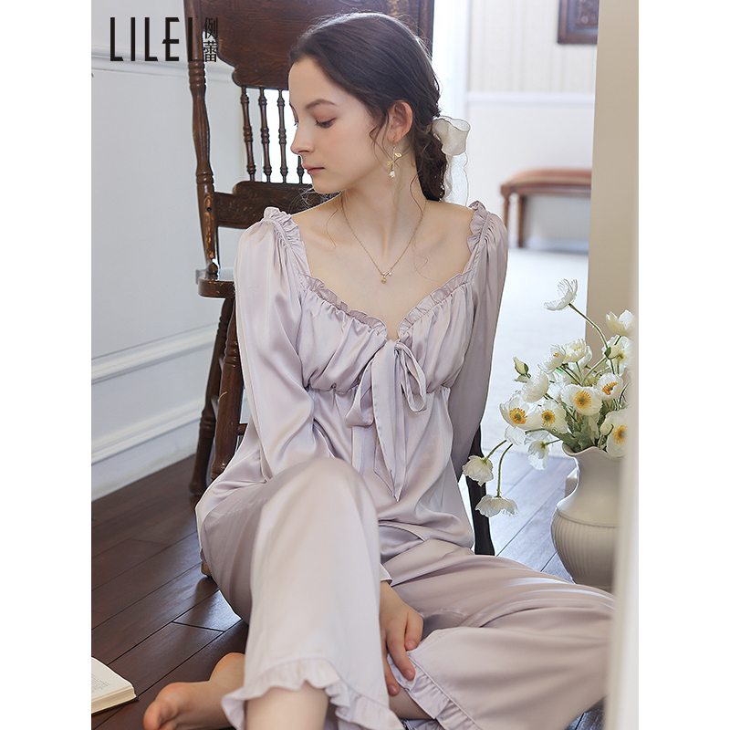 Ice Filament Nightgown Lady Sleeve Self-sleeved Courtyard Spring and Fall Palace Festival Retrospective Sweet Sexy Subtractive Household Summer