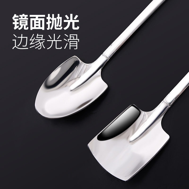 Two sets of pointed square heads with iron shovel spoon in two sets, shovel spoon in two sets, shovel spoon in two sets with containing box pointed square head with iron shovel spoon three sets of tips
