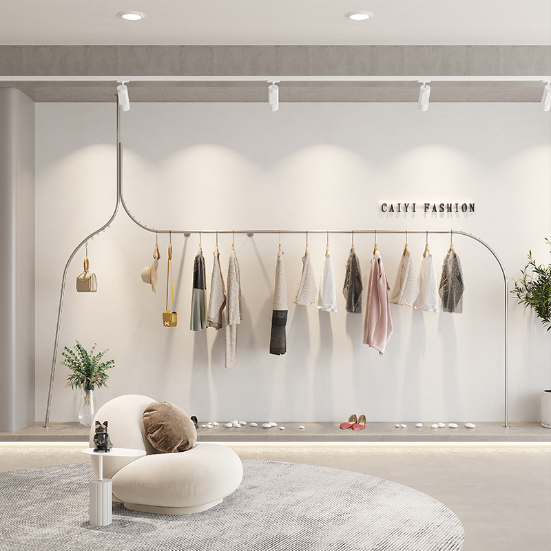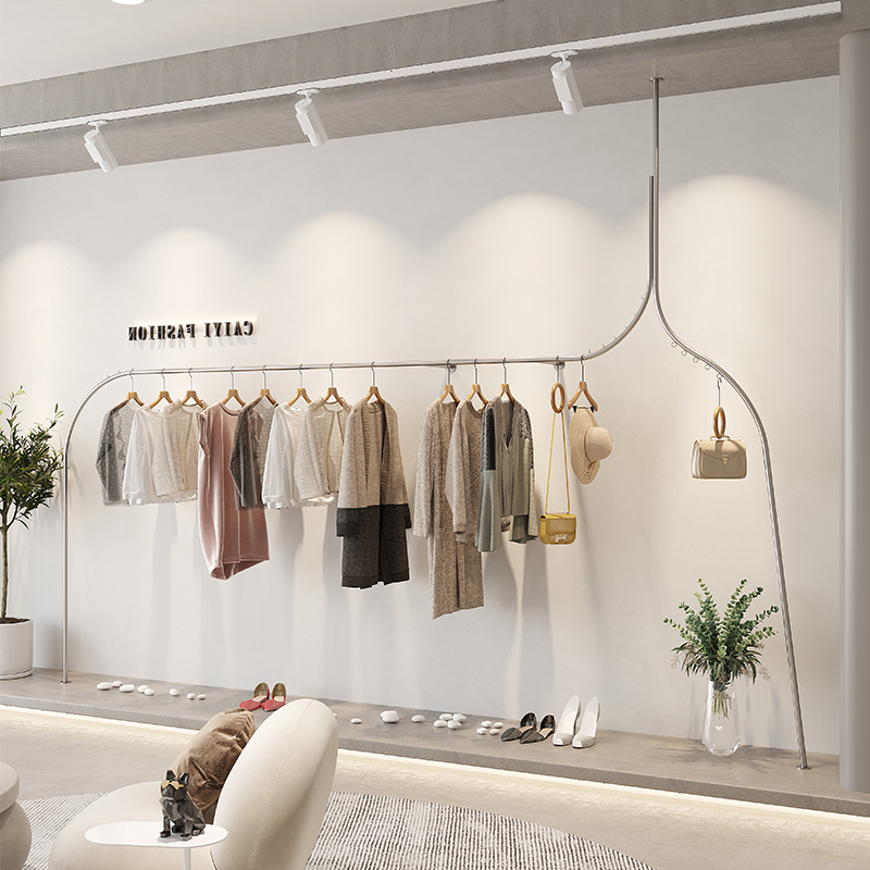 Clothing Store Display Rack Upper Wall Hanging Side Hanging Stainless Steel Display Rack Clothes Hanging Clothes Rod Women's Clothing Store Shelves