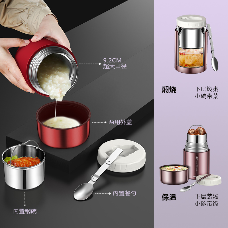 (Welfare single cup) 304 all-steel 800ml (random color) This model does not come with a thermal insulation bag. The double layer has one more built-in small bowl than the single layer (316 double layer) 1000ML single cup rose
