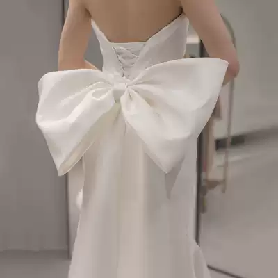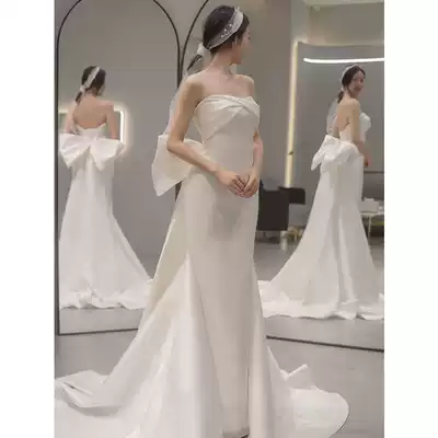Satin chest light wedding dress 2021 White simple small tailing tail out yarn temperament fishtail slim slim dress
