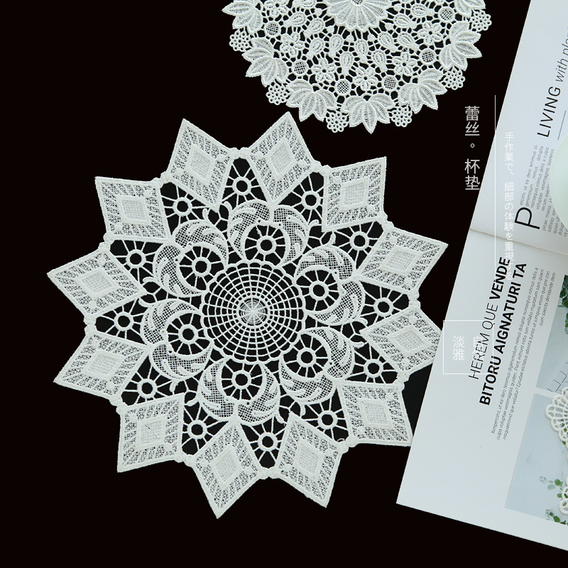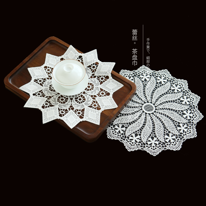 Meritocratic 6201 lace hollowed-out round anti-scalding thermal insulation mat tea trays Tea Cup Dining Mat Gourmet Photography Swing props