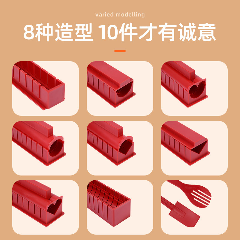 Warm white 10-piece set (mold rice spoon pressure plate) Warm white 10-piece set + 10 pieces of seaweed Warm white heart shape 3-piece set (large frame + base + upper cover) Warm white love heart shape 3-piece set + 10 pieces of seaweed Warm white large circle 3-piece set (large frame + base + upper cover) Warm white large round 3-piece set + 10 pieces of seaweed Warm white small square 3-piece set (outer frame + bottom plate + pressure rod) Warm white square 3-piece set + 10 pieces of seaweed Warm white 10 pieces set + seven-hole sushi knife Warm white 10 pieces set + seven-hole sushi knife + 10 pieces of seaweed ( Seaweed for sushi) Total 20 pieces (2 packages) Red 10-piece set (mold rice spoon pressure plate) Red 10 piece set + seven-hole sushi knife Black ten-piece set (mold rice spoon pressure plate) Black 10-piece set + seven-hole sushi knife