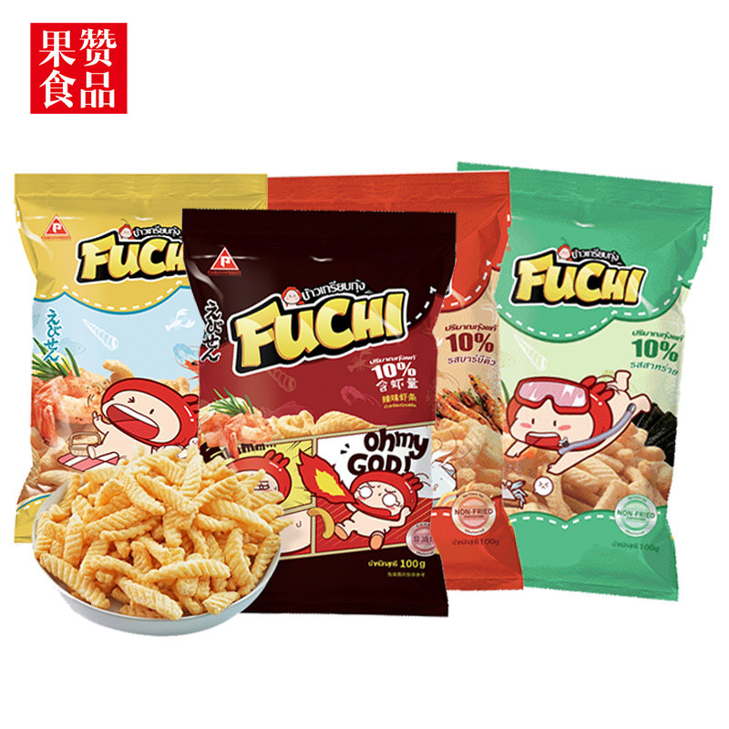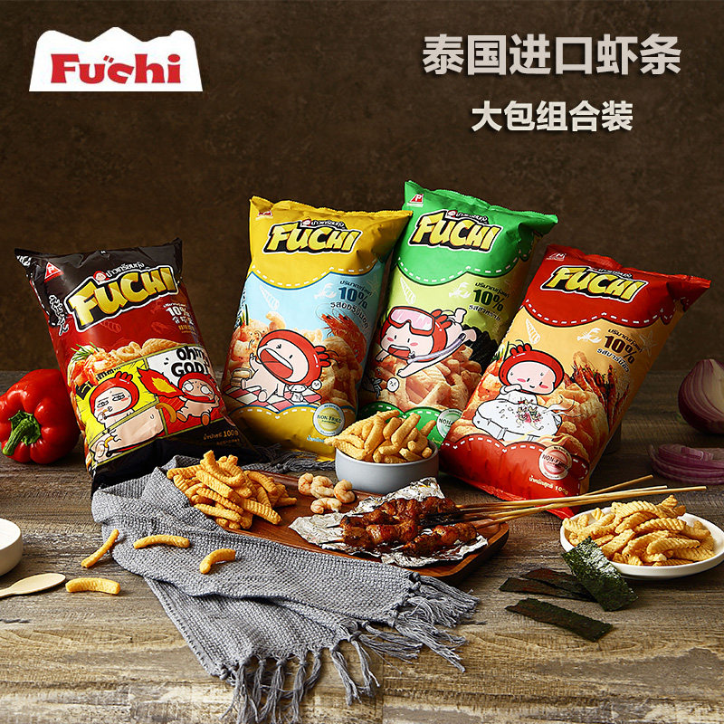 Thai import fuchi rich in shrimp strips 100g * 3 bags net sweet potato crispy shrimp strips non-fried casual snacks big bag