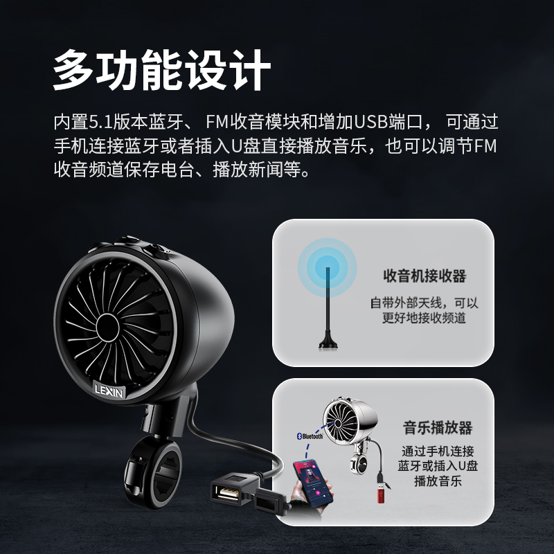 American LEXIN Lexing motorcycle audio subwoofer waterproof Harley all-in-one electric faucet Bluetooth speaker