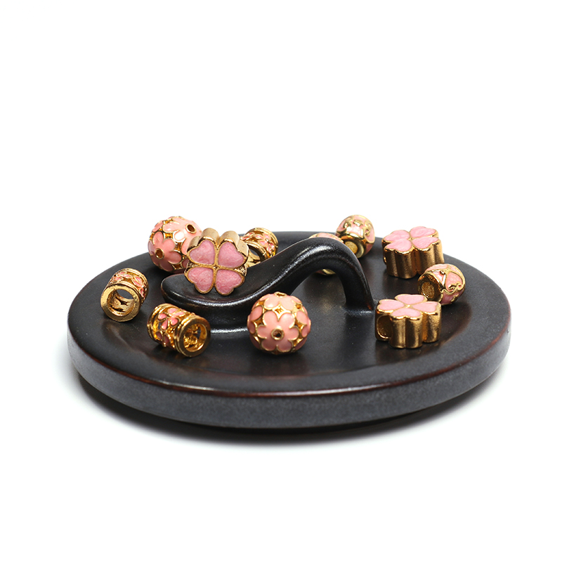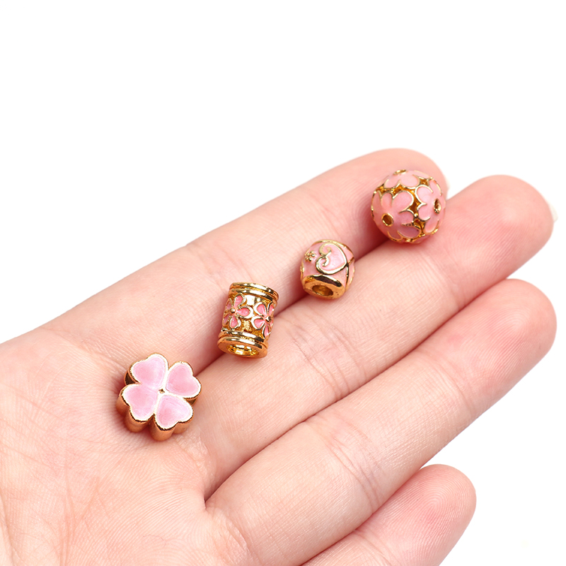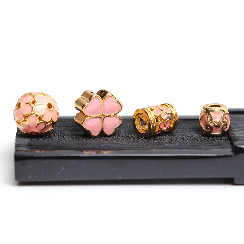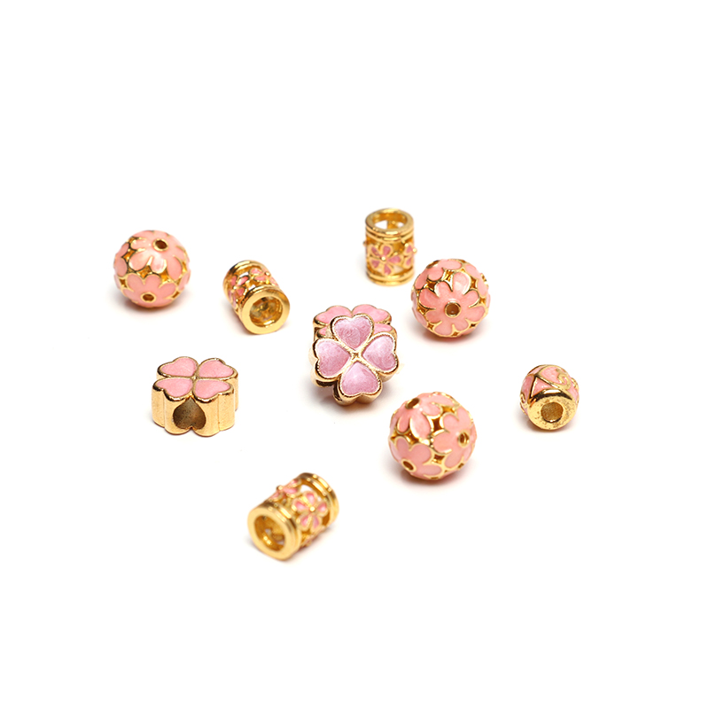 Pink Japan Series Four Leaves Grass Cherry Blossom Gold Plated Hollowed-out Straight Pearl Barrel Beads Hand Strings BEADS DIY ORNAMENT ACCESSORIES MATERIAL