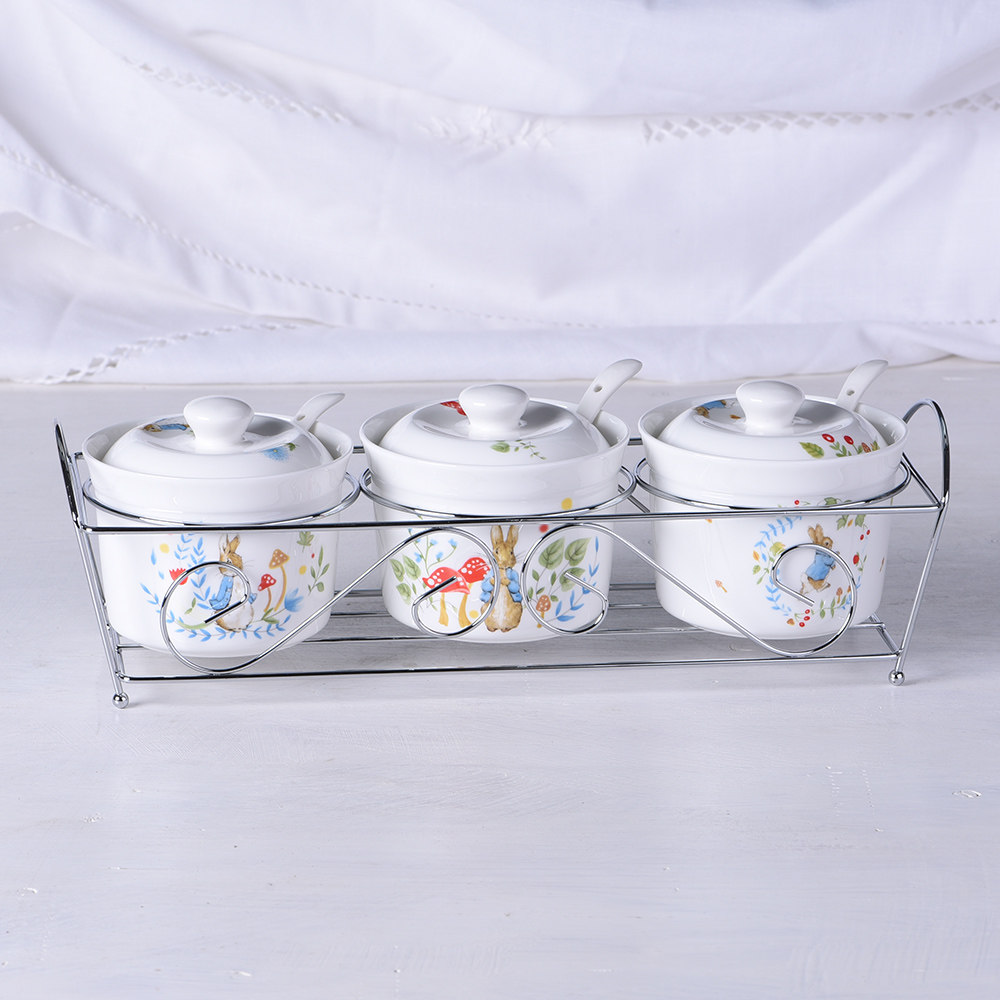 Export British bone china rabbit tableware seasoning jar seasoning box sugar jar salt shaker cute cartoon set ceramics
