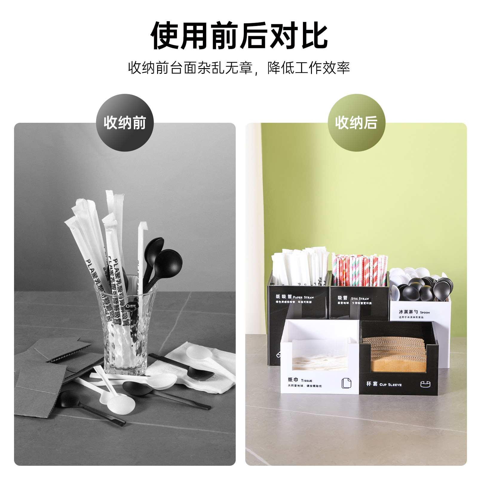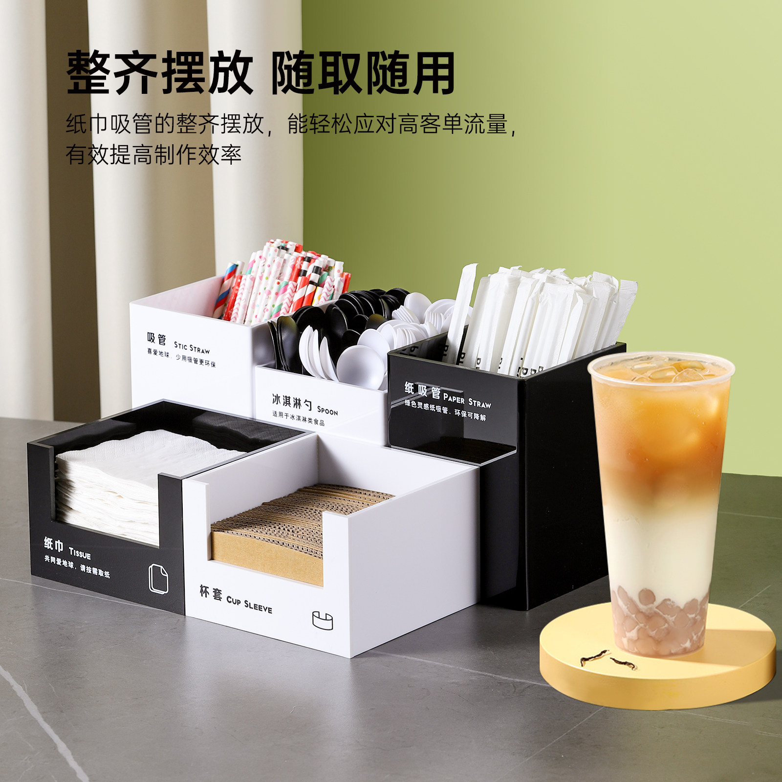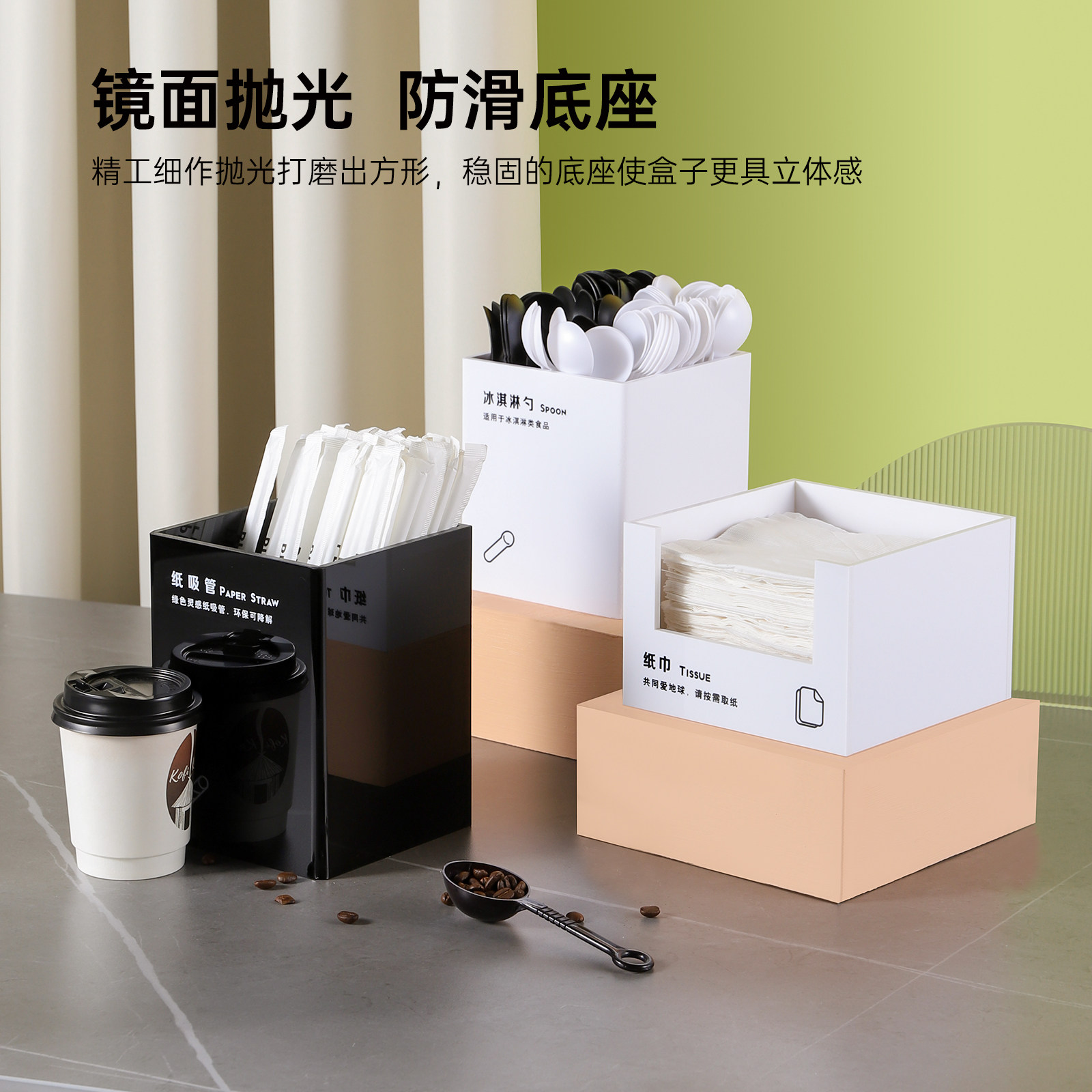 Acrylic black tissue box acrylic black cup cover case acrylic black ice cream spoon case acrylic black paper straw box acrylic black straw box acrylic black containing box five pieces (