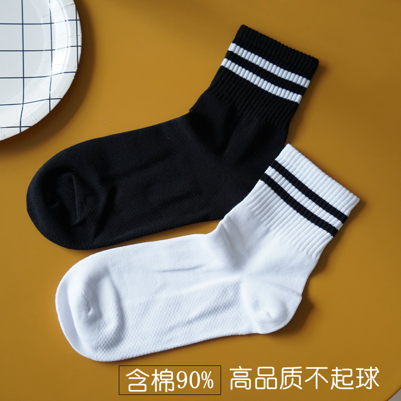 College Wind Sports Socks Children Spring Autumn Summer Students Women Socks Pure Cotton Deodorant Casual Black And White Color Striped Midbarrel Socks
