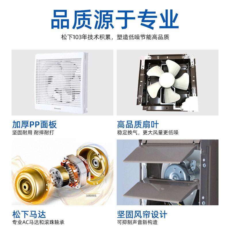 Panasonic exhaust fan Exhaust Fan Wall Style Glazing with Makeup Room Kitchen Home Powerful Toilet Ventilator