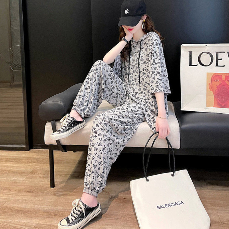 Summer Leisure Sports Suit Women's Tennis Red Fashion Foreign Pie loose pure cotton Large size Two sets Less age Lean Tide Cards