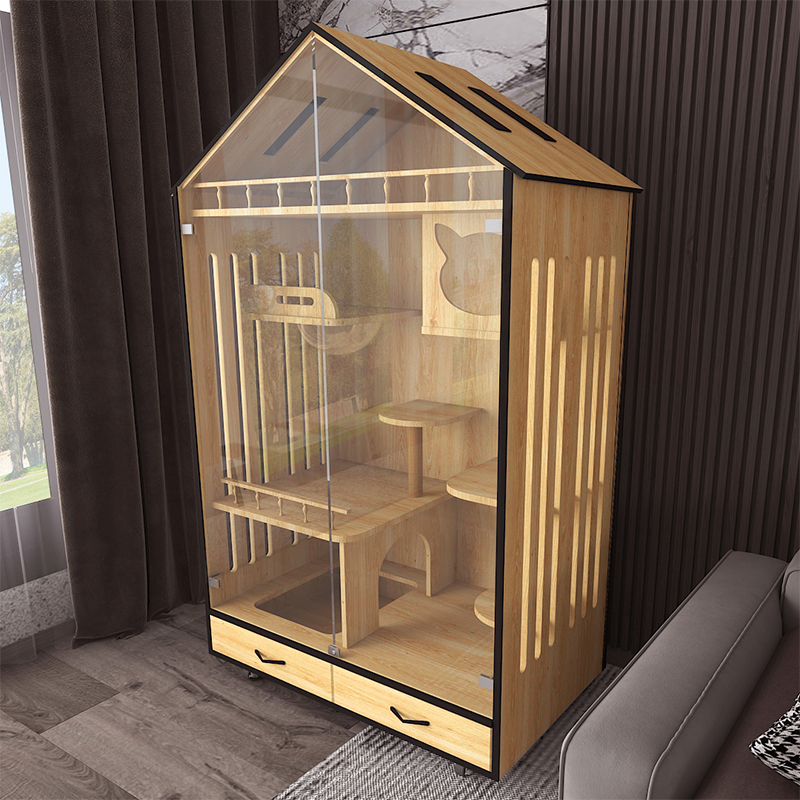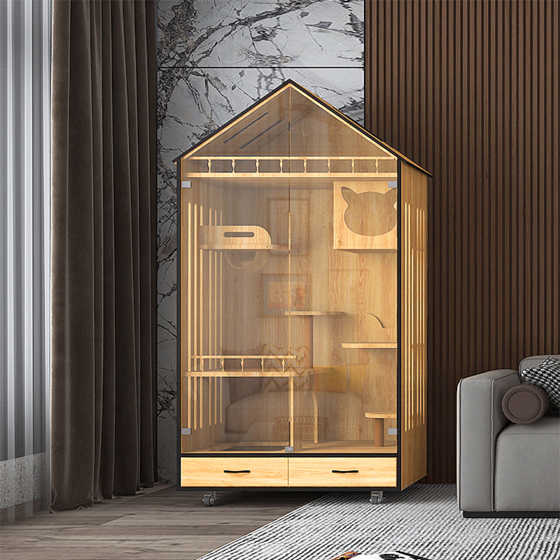 Duoyitang cat cage villa luxury solid wood large household cat litter cat house cat house glass display cabinet can be customized