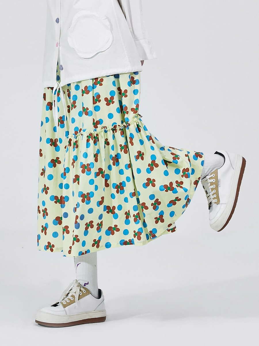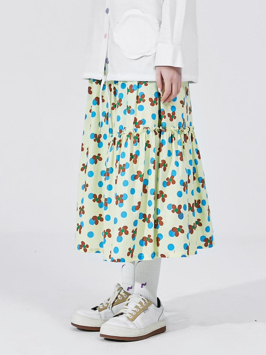 INSNLASIA Original Retro Double-layer Color Matching Polka-dot Skirt Trendy Brand Female Mori Sweet Floral Skirt