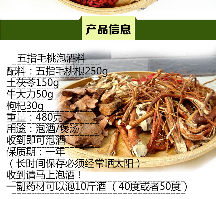 Five-finger hairy peach root soaked wine ingredients recipe soil Poria cocos beef vigorously wet soaking wine five-finger hairy peach soil Poria soup medicinal materials